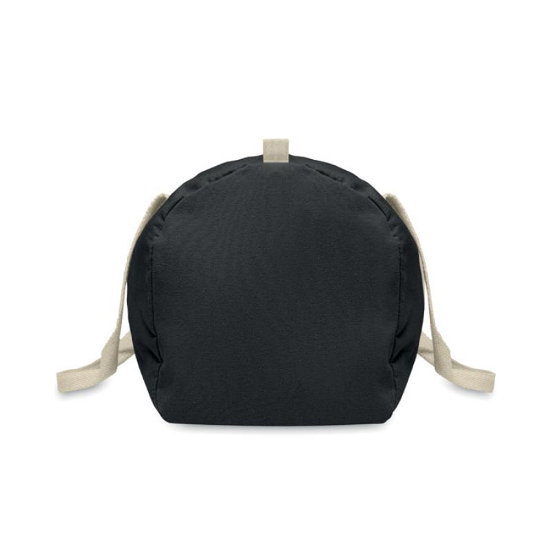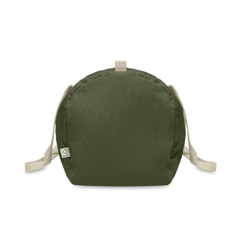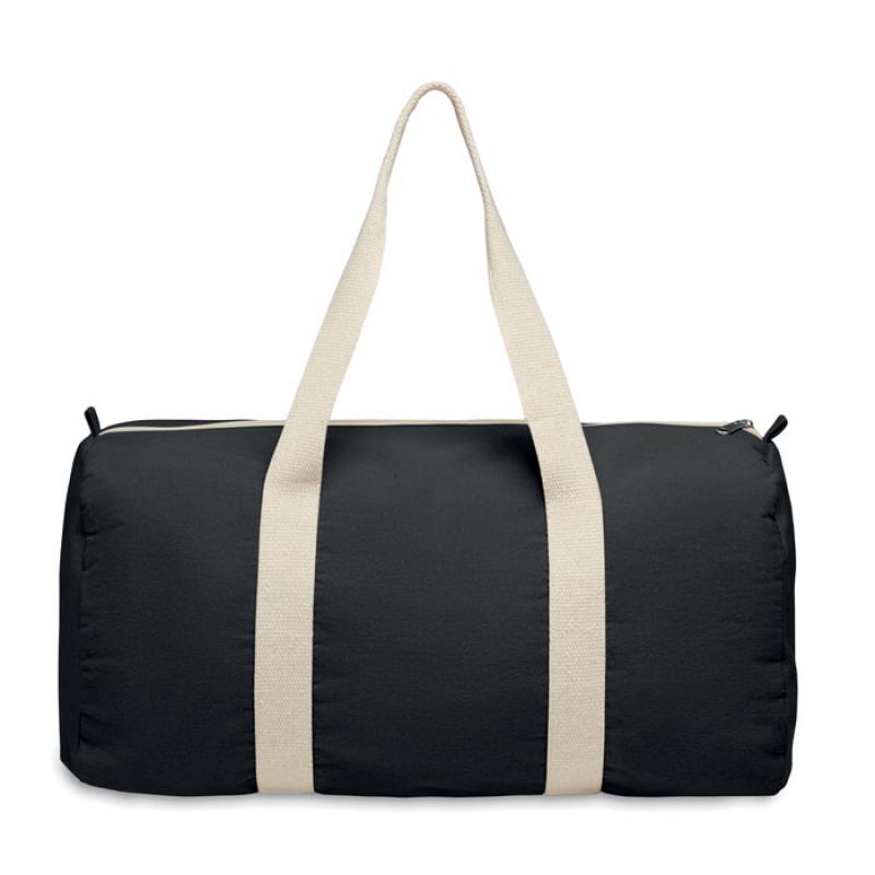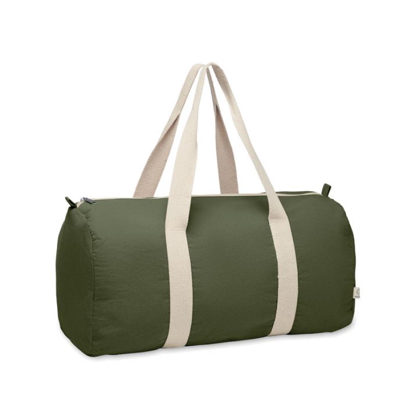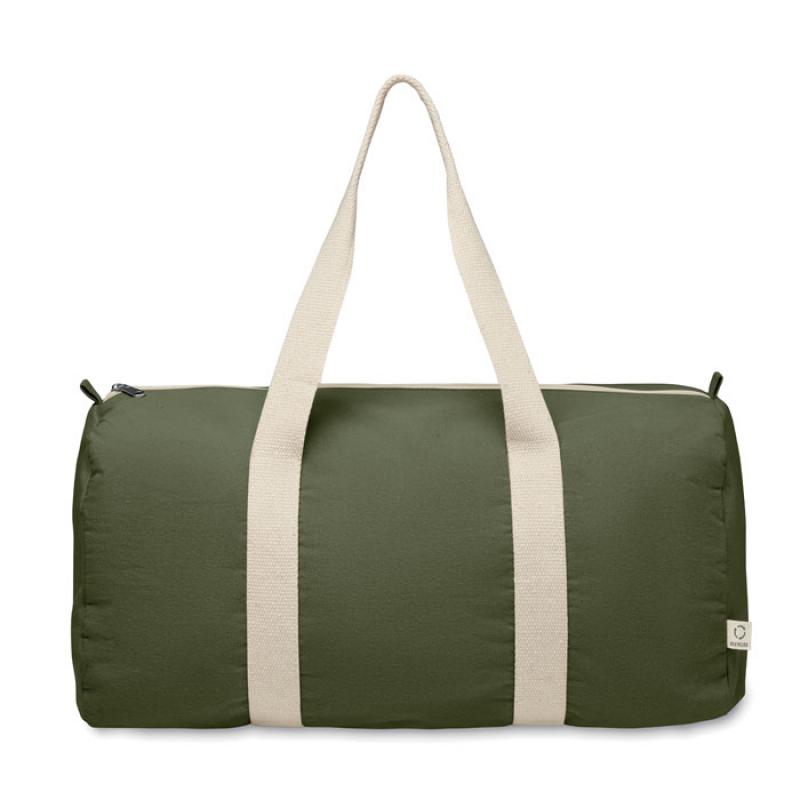 Bolsa de deporte o de viaje con compartimento lateral con cremallera y bolsillo interior con cremallera en algodón reciclado de 320 gr/m² (80%) y poliéster reciclado (20%) con asas largas.Recipiente :