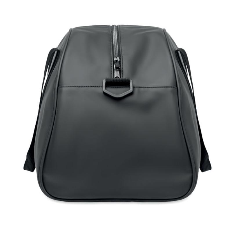 Bolsa de viaje de PU suave con refuerzo inferior de espuma. Un compartimento principal, bolsillo frontal con cremallera y bolsillo interior con cremallera. Forro de poliéster RPET 210D. 2 asas y una bandolera ajustable y desmontableRecipiente :