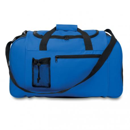 Bolsa deportiva de color en poliéster 600D con bolsillo frontal y bolsillo de rejilla. Bandolera ajustable y desmontable.