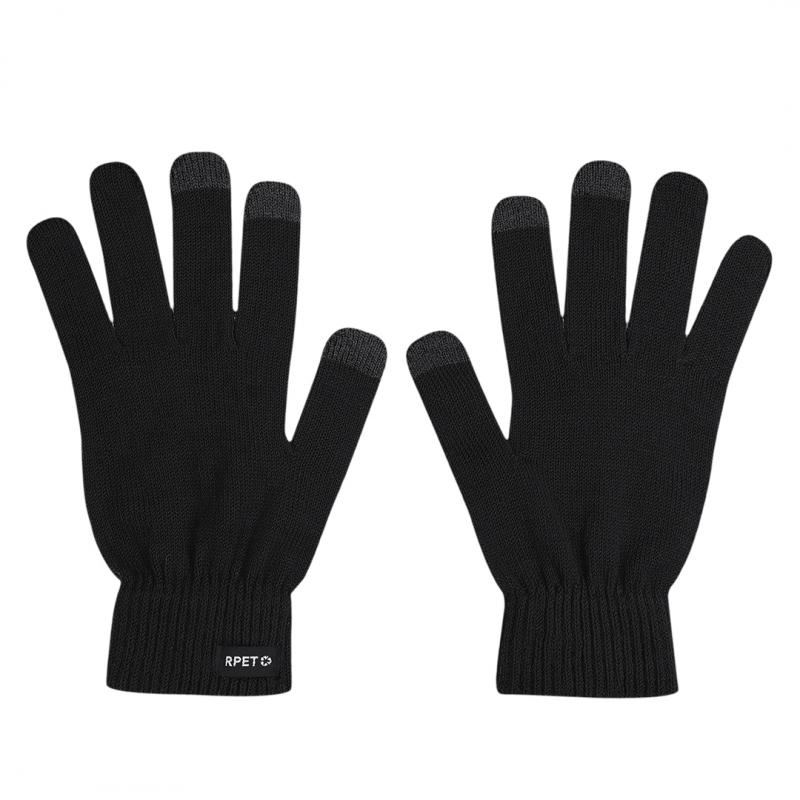 Guantes fabricados en cálido y suave tejido poliéster RPET. Con función táctil en dedos corazón, índice y pulgar a color. Talla única adulto. Con distintitivo RPET en etiqueta exterior. El material RPET se elabora a partir de plástico reciclado, para así fomentar la reutilización de residuos plásticos y ayudar a la sostenibilidad del planeta.