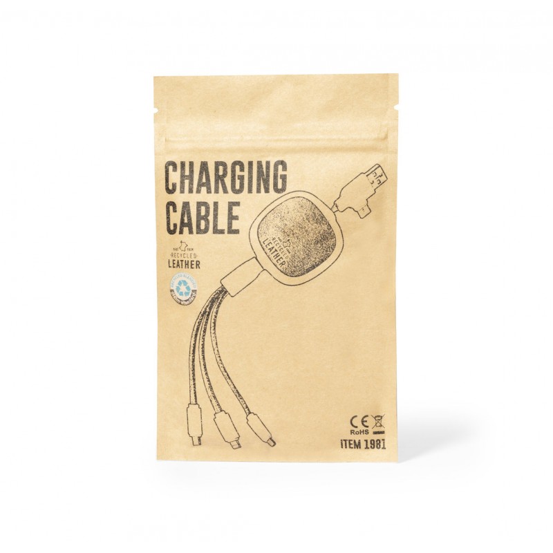 Cable cargador extensible de 1 m, fabricado en RABS y en elegante color blanco, con cables y detalles en cuero reciclado.Pieza central con cubierta en cuero reciclado y mecanismo interior que convierte al cable en extensible. Con conexiones de entrada Tipo C y USB y salidas Tipo C,Lightning y Micro USB. 5V DC 2.4AEl material RABS o ABS Reciclado y el cuero reciclado proceden del reciclado de artículos al final de su vida útil. Los materiales reciclados empleados incorporan la certificación RCS, que garantiza el origen reciclado de los mismos.