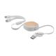 Cable de carga retráctil multiUSB en ABS con detalle de bambú en la parte superior. Entrada: 2 en 1 Tipo-C y Tipo-A. Salida: Tipo-C y 2 en 1 Tipo-B y conector. Longitud del cable: 90 cm.Recipiente :