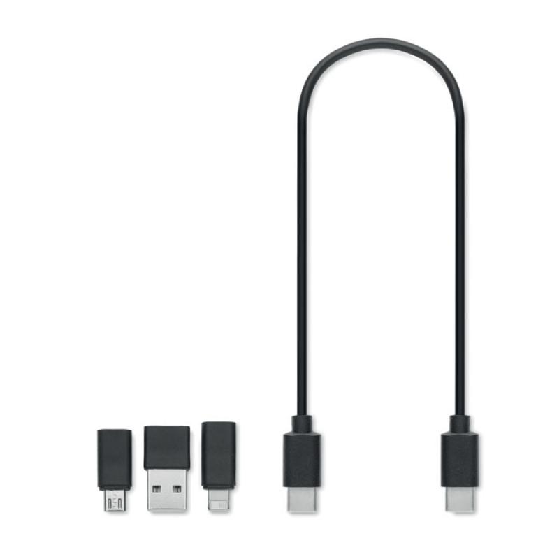 Cable de carga 3 en 1 con diferentes conectores. Presentado en caja de madera de acacia. Cable de tipo C a tipo C, de C a USB-A, de C a micro-B y de C a conectores.Recipiente :