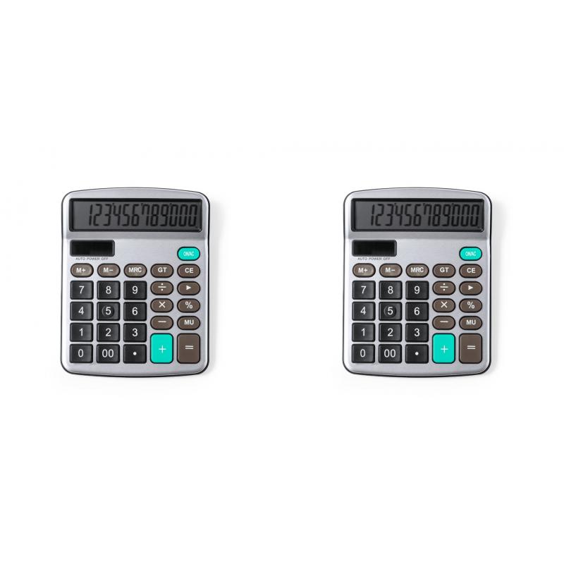 Calculadora de 12 dígitos fabricada en resistente aluminio y ABS, con teclas de tacto suave. Funcionamiento dual con energía solar y alimentación auxiliar con pila de botón (incluida, con film protector). Pantalla LCD y mecanismo de apagado automático. Presentada en caja individual de diseño kraft.