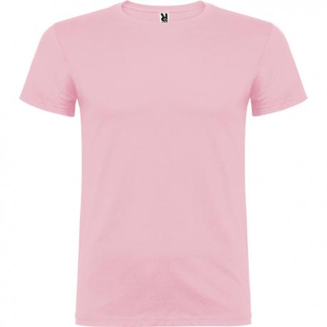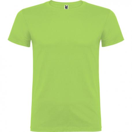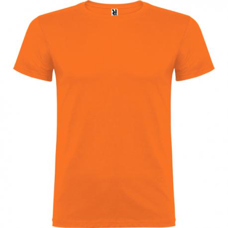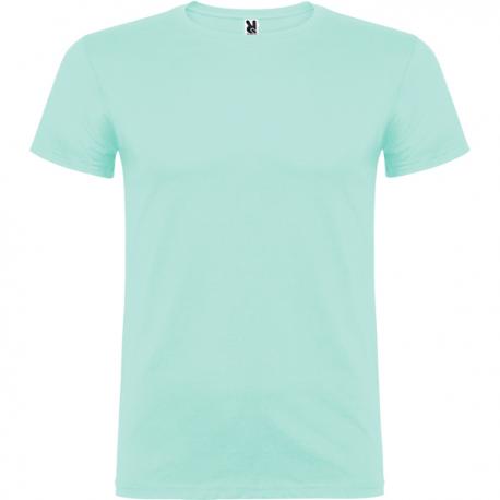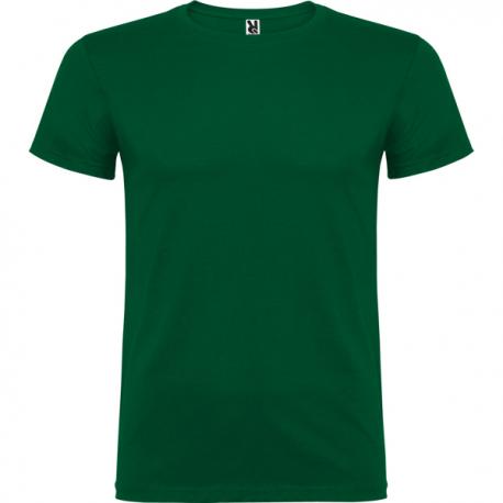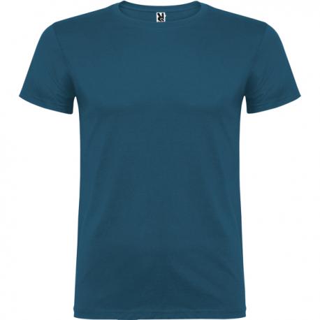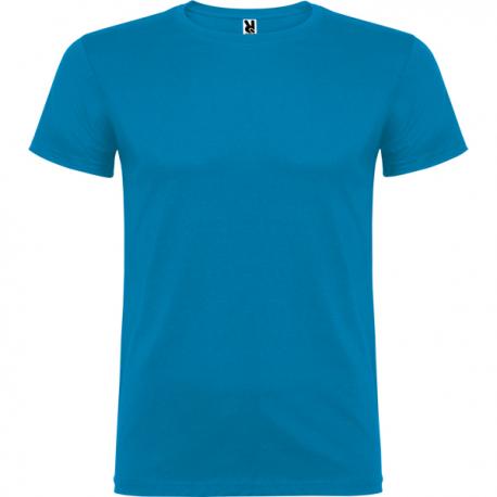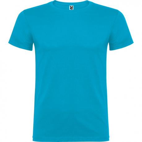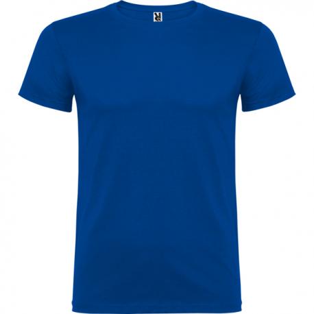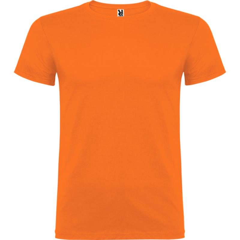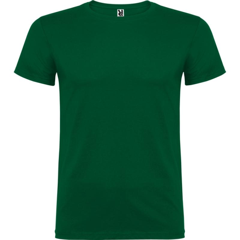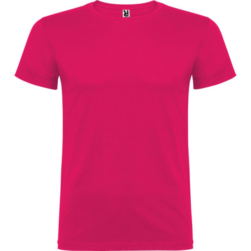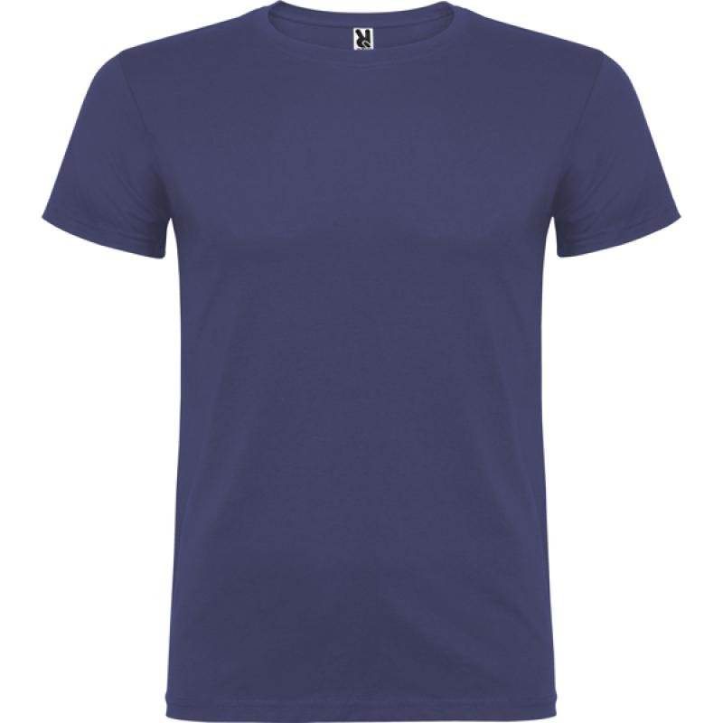 Camiseta de manga corta de cuello redondo doble con elastano, confeccionada en tejido tubular en tallas de adulto, y con costuras laterales en tallas de niño, con cubrecosturas reforzado en cuello.