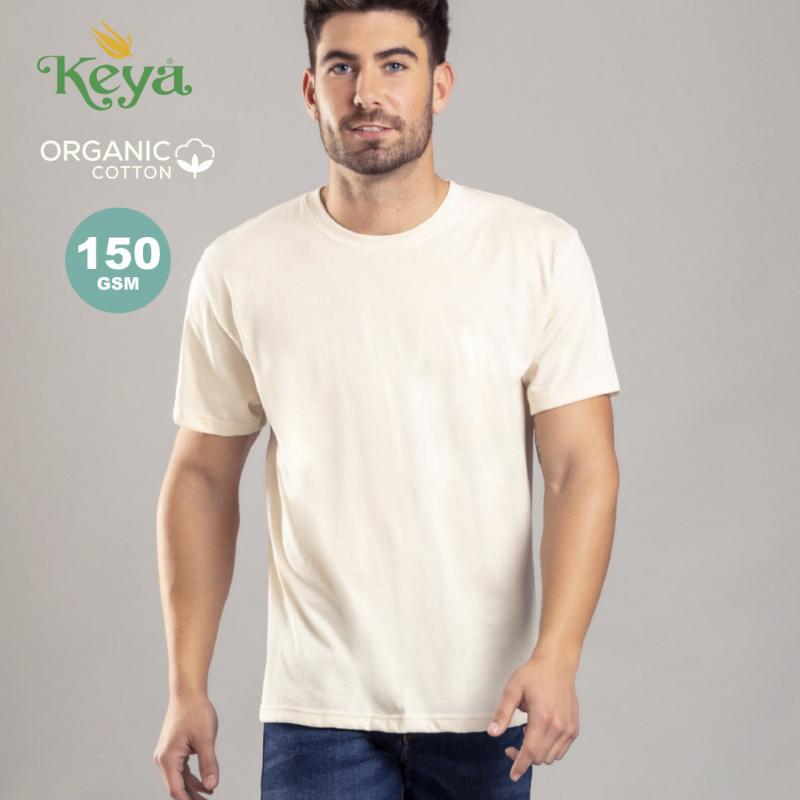 Camiseta para adulto Keya Organic MC 150. En material 100% algodón orgánico, single jersey de 150g/m2. En color natural y en tallas S, M, L, XL, XXL. Distintivo organic en etiqueta.