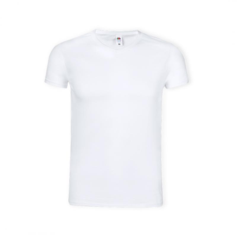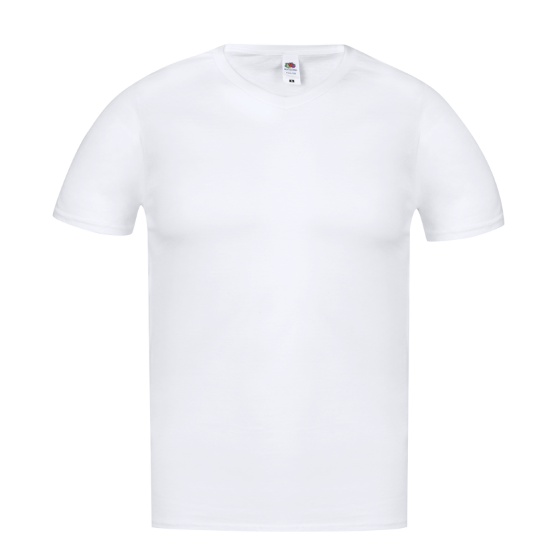 Camiseta para adulto blanca Iconic V-Neck de Fruit Of The Loom. Fabricada en material 100% algodón peinado Ring Spun de 140g/m2. De tacto suave y corte moderno, con cuello en pico estrecho de canalé 1x1 y tapeta a juego. Etiqueta fácilmente removible y disponible en tallas S, M, L, XL, XXL.