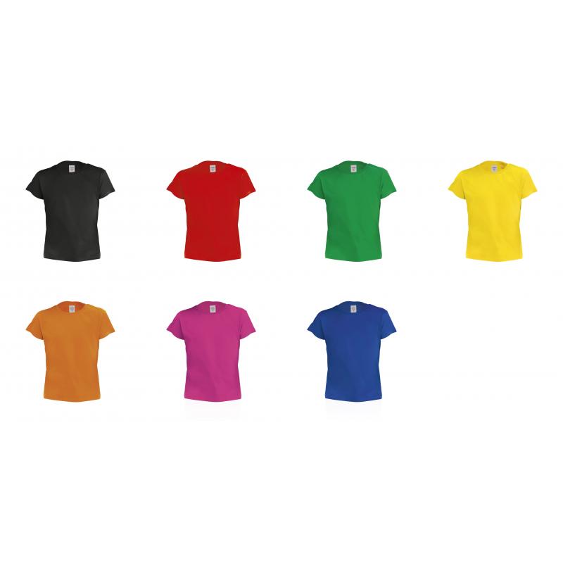 Camiseta para niño en material 100% algodón de 135g/m2. Disponible en variada gama de vivos colores y en tallas 4-5, 6-8, 10-12.