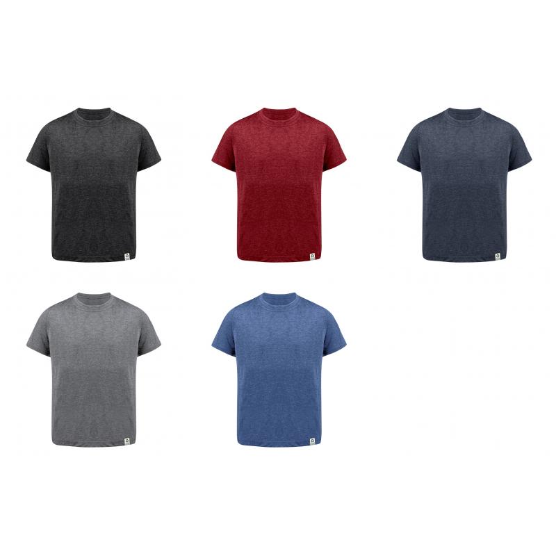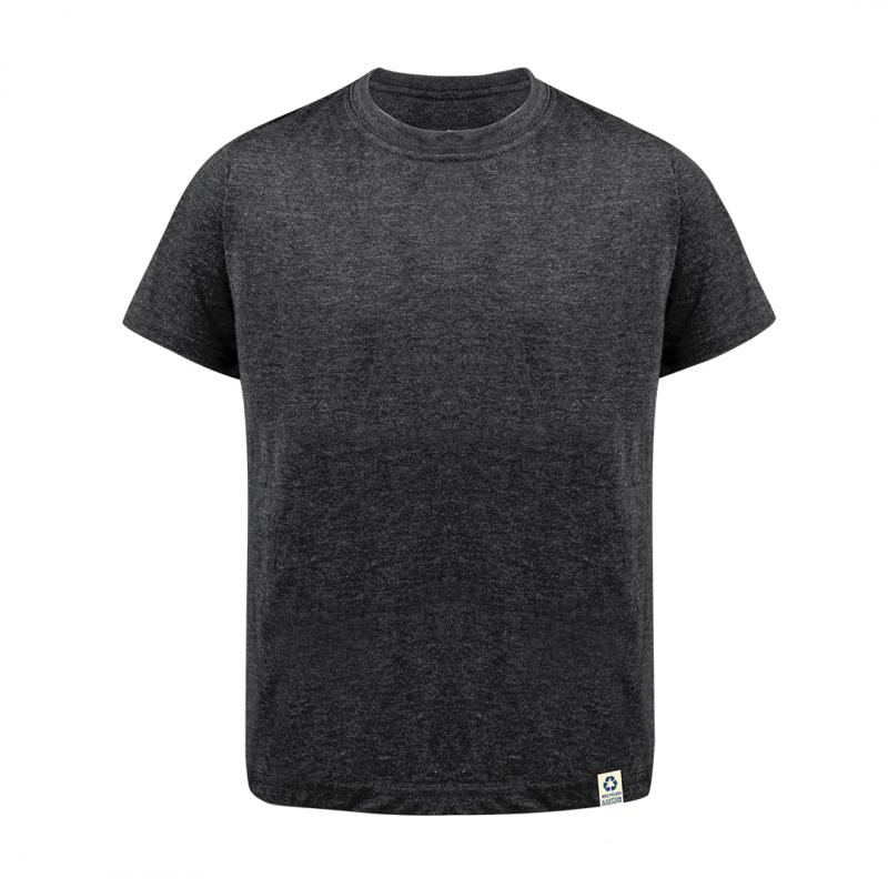 Camiseta para niño fabricada en material 60% algodón reciclado en combinación con RPET, tejido Single Jersey de 150g/m2. Disponible en variada gama de colores, con logotipo reciclado en etiqueta y en tallas 4-5, 6-8, 10-12.El material RPET se elabora a partir de plástico reciclado, para así fomentar la reutilización de residuos plásticos y ayudar a la sostenibilidad del planeta.