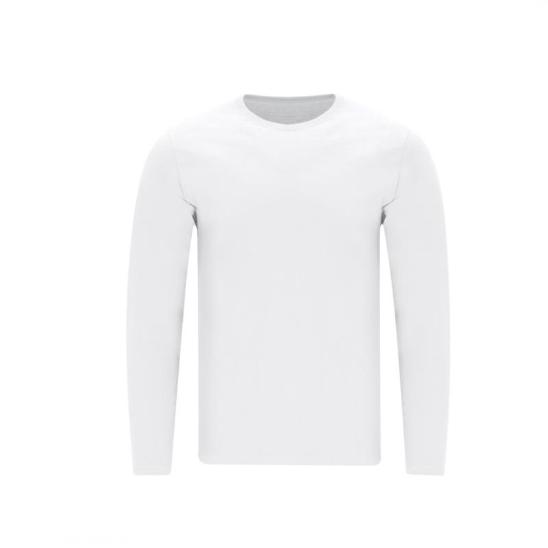Camiseta de manga larga para adulto en color blanco de suave y agradable tacto en 100% algodón, punto liso de 160 g/m2. Confeccionada en tejido tubular, con cuello redondo acanalado 1x1 y con cubrecosturas reforzado a juego en color blanco.