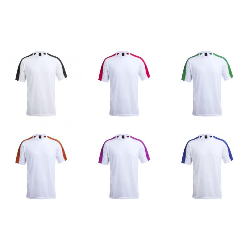 Camiseta técnica para adulto en material dynamic, altamente transpirable y confeccionada en tela 100% poliéster de 135g/m2. Original diseño en color blanco, con franja de color en las mangas. Disponible en variados colores y en tallas S, M, L, XL, XXL.