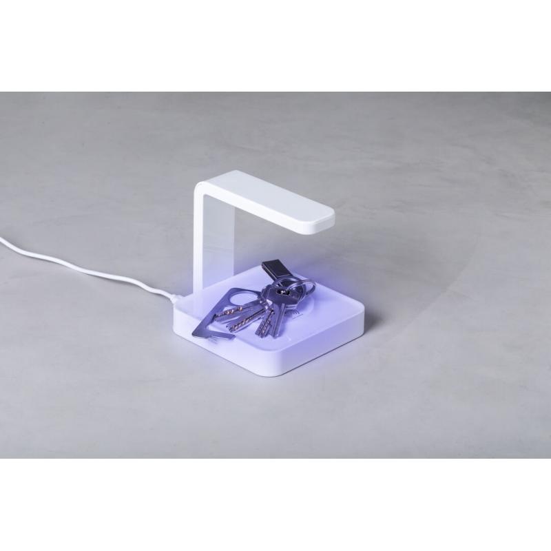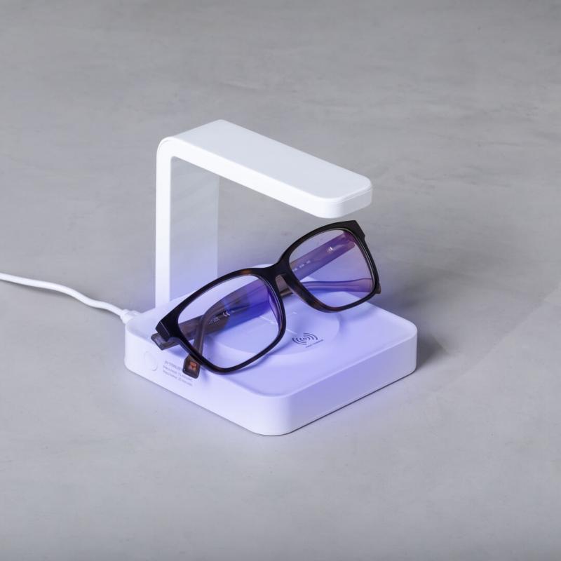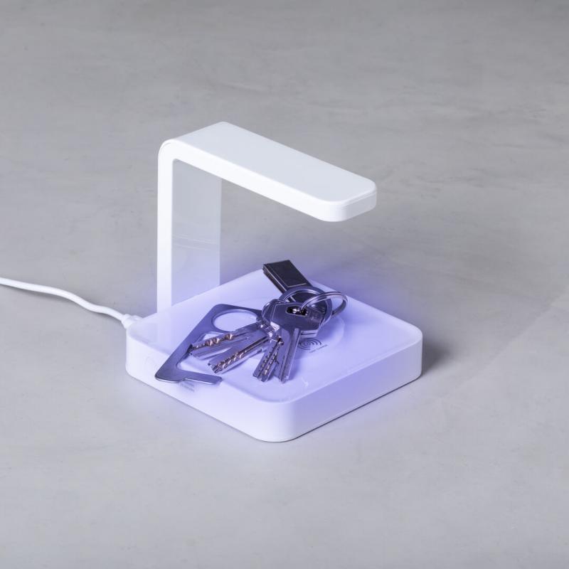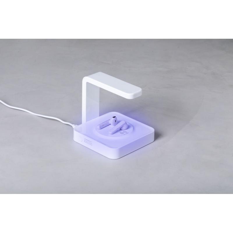 Lámpara esterilizadora de luz ultravioleta tipo C con cargador inalámbrico integrado para smartphone. Especialmente diseñada para la eliminación de microorganismos y bacterias en objetos de uso cotidiano como el smartphone, llaves, gafas, mascarilla, auriculares, smartwatch… Fabricada en resistente material ABS de acabado brillante y presentada en atractiva caja individual de diseño. Fácil de usar, basta con situar el objeto a esterilizar en la base de la lámpara. Potencia de salida 2,5W y longitud de onda de 254 nm. Salida USB de 1000 mA, con función de carga rápida 10W y cable micro USB incluido a juego de 1 metro de largo. Tiempo de esterilización de 15 y 25 minutos con función autoapagado. Disponible manual de usuario en español e inglés. Disponible certificación CE, RoHS y de efectividad germicida. Para un uso adecuado del producto, evitar el contacto con la piel y los ojos.