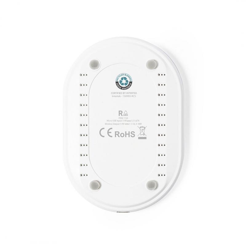 Cargador inalámbrico 10W de línea nature, con práctico diseño ovalado. Carcasa en ABS reciclado (RABS) y con certificación RCS, que garantiza el origen reciclado del mismo. Cable de carga incluido, base antideslizante y compatible con dispositivos equipados con tecnología de carga inalámbrica. Presentado en atractiva caja de diseño eco. Disponible manual de instrucciones en español e inglés.