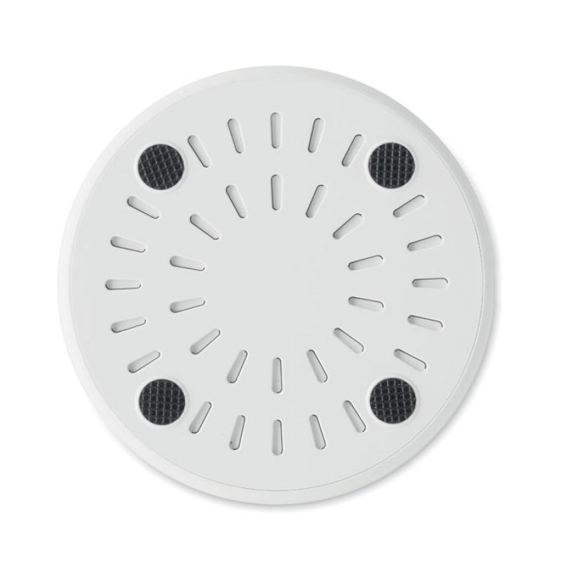 Cargador inalámbrico de ABS reciclado. Conéctalo a tu ordenador, coloca el smartphone sobre el dispositivo para comenzar la carga. Salida: DC 9V/1.1A (10W) para una carga rápida. Compatible con los últimos androides, iPhone® 8, X y más recientes.