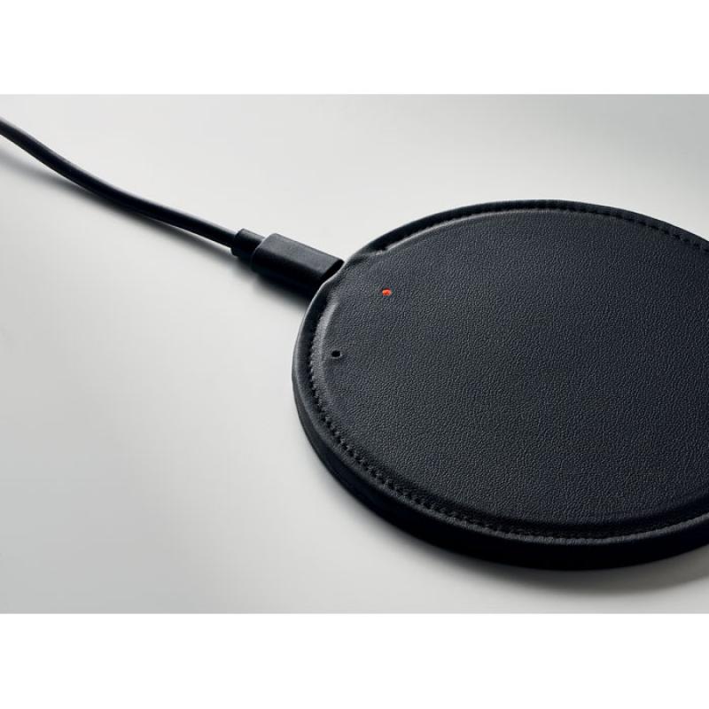 Cargador inalámbrico de PU reciclado. 58% reciclado (40% poliéster reciclado y 18% PU reciclado). Salida: DC 9V/1.67A (15W) para carga rápida. Compatible con todos los dispositivos habilitados para QI como los últimos Androids, iPhone® 12, X y más recientes.Recipiente :