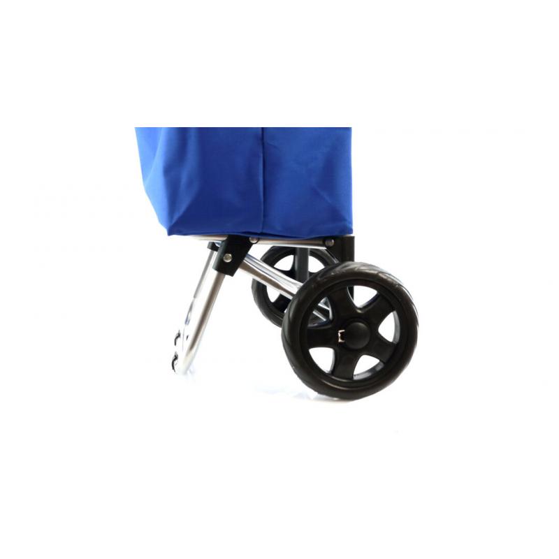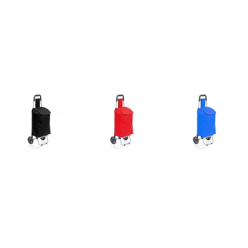 Carro de compra plegable en resistente poliéster 600D de variada gama en vivos colores. Con asas reforzadas, cuerpo metálico tubular, bolsillo de cremallera posterior y soportes con gomas de protección. Ruedas reforzadas de alta calidad.