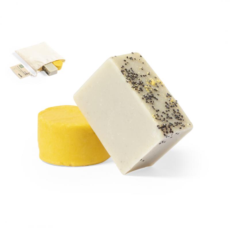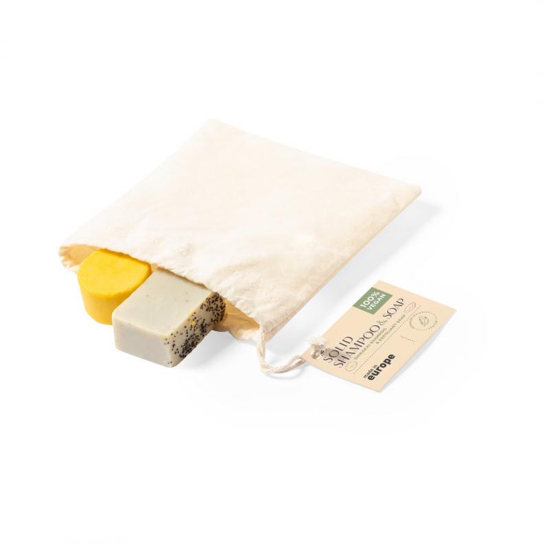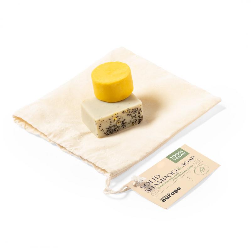 Set vegano de jabón y champú sólidos. Contenido: Pastilla de jabón botánico de 50 gr, elaborada con ingredientes de cultivo ecológico. Con propiedades reguladoras y purificantes. Champú sólido Shikakai de 30 gr, elaborado con una selección de ingredientes activos como la oliva virgen, manteca de karité bio, zanahoria y extractos botánicos de shikakai. Rico en vitamina E, aportando al cabello limpieza, sedosidad y vigor. De agradable fragancia que aporta un estado de placer y bienestar interior. Presentación en bolsa individual de algodón, con cierre de cordón y etiqueta distintiva. Dermatológicamente testado y de fabricación europea. Producto sostenible y 100% vegano, sin ingredientes de procedencia animal. Además, no se han realizado pruebas de estos productos en animales, promoviendo el cuidado y respeto de todos ellos.