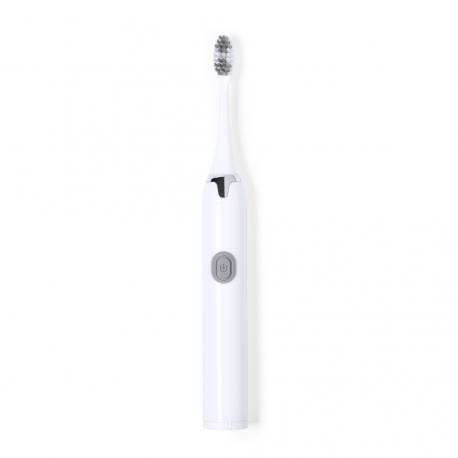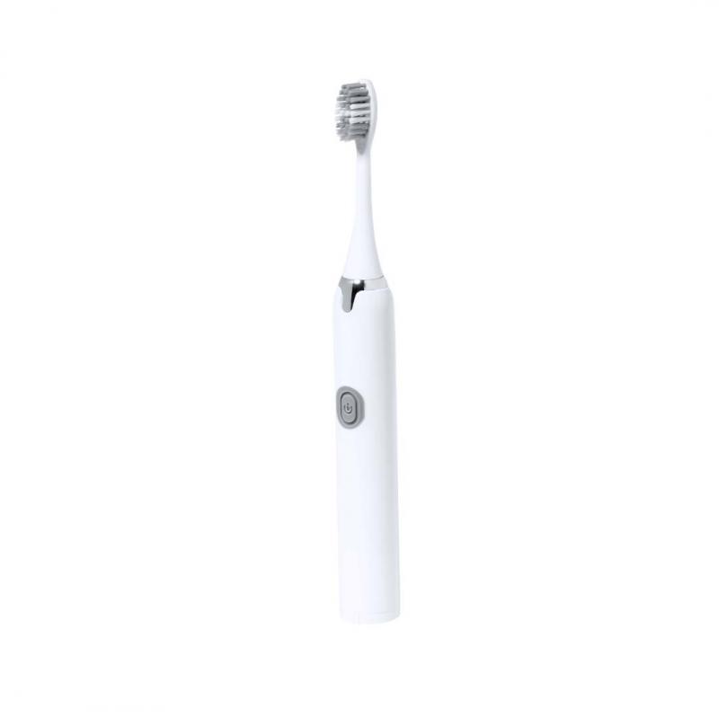Práctico cepillo de dientes portátil eléctrico. Eficiente limpieza gracias a su función de vibración y a sus agradables cerdas. Funciona con 1 pilas AA (no incluida) introducidas por la base. En color blanco y plateado, presentado en una caja de diseño kraft.