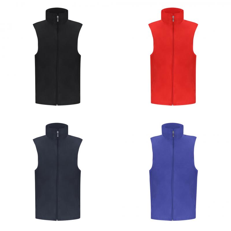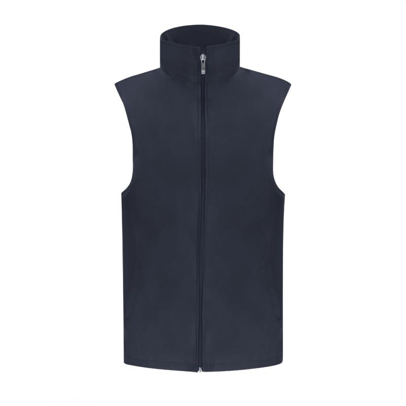 Chaleco Unisex de tejido ligero y transpirable con interior confeccionado en tejido de malla blanco. Cremallera frontal a tono y tirador plateado, con un bolsillo exterior en cada lateral.