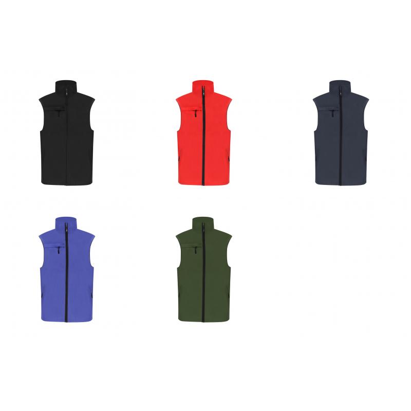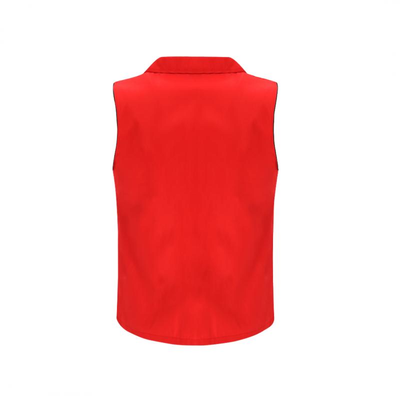 Chaleco Unisex de tejido ligero y transpirable con interior confeccionado en tejido de malla blanco. Con cremallera frontal negra y tirador plateado. Incluye un bolsillo exterior en el pecho derecho y dos bolsillos laterales con cremalleras y tiradores en color negro. Cuenta con media luna en el interior del cuello.