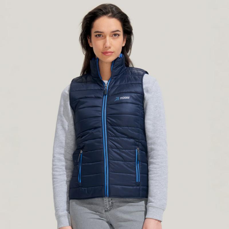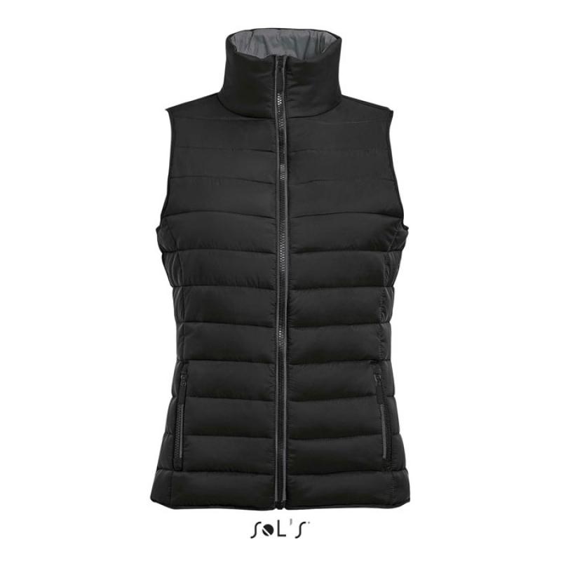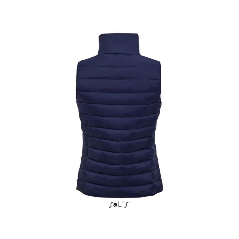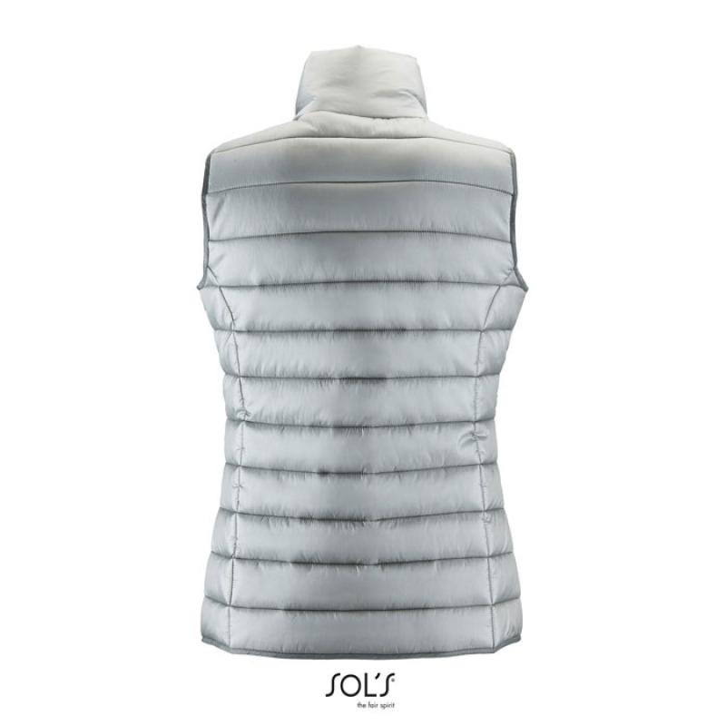 SOL'S WAVE Chaleco Mujer 180g/m². Gemelo de la chaqueta acolchada Ride en versión sin mangas, para ofrecer una mayor libertad de movimiento o para llevar como capa adicional encima de nuestra chaqueta, forro: 100% nylon, relleno: 100% poliéster - 180 g/m2, 2 bolsillos con una elegante cremallera a juego con el forro, cuello alto, de corte ajustado, acabado tono sobre tono en la parte inferior.Recipiente :