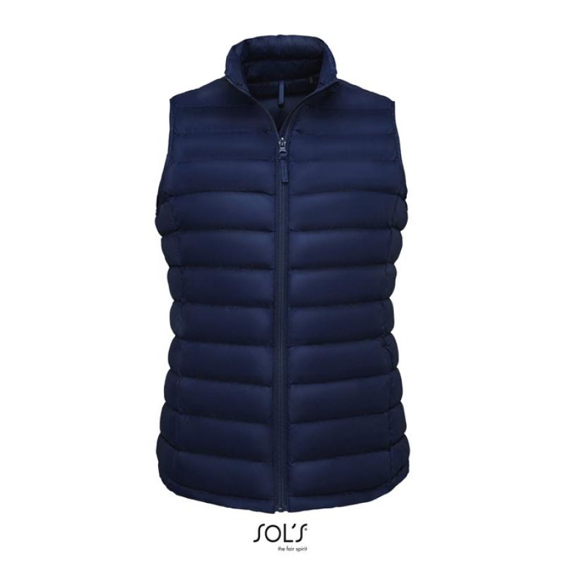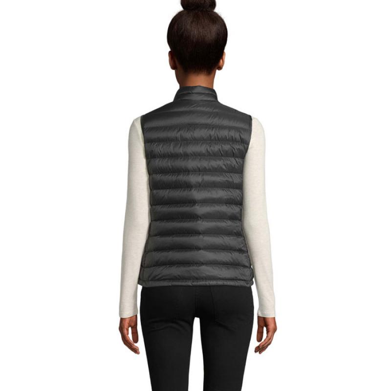 SOL'S WILSON BW MUJER. Chaleco ligero acolchado para mujer. Tejido exterior y forro: 100% poliamida. Acolchado 60% Sorona 40% poliéster reciclado. POLIAMIDA 380T, apertura con cremallera, 2 bolsillos delanteros con cremallera, 2 bolsillos interiores, cuello alto pequeño, corte ceñido, sistema de doblado ''en bolsa'' con topes. OEKO-TEX®. Sólo se vende con impresión.Recipiente :