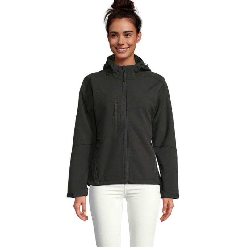 SOL'S REPLAY chaqueta mujer 340. 2 bolsillos laterales y 1 bolsillo en el pecho con cremallera. Cordón ajustable a la cintura. Puños ajustables con velcro®. Capucha con cordón ajustable. Fabric details: 94% poliéster - 6% elastano. Forro polar interior de 100% poliéster. 3 capas. 8000 mm membrana impermeable y transpirable. OEKO-TEX® Sólo se vende impreso.Recipiente :