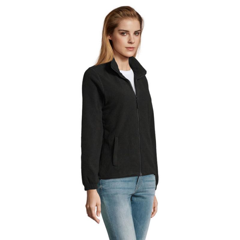 SOL'S NORTH WOMEN, CHAQUETA DE FLEECE CON CREMALLERA PARA MUJER, 100% poliéster de alta densidad FLEECE 300, Corte corto, Antipilling, Cinta de refuerzo en el cuello, Cuello alto forrado, 2 bolsillos con cremallera y solapa, Corte entallado, Puños elásticos, Canesú trasero de media luna, Cordón elástico en el bajo. Para la correspondencia de tallas, consulte la tabla de tallas en la sección de documentación del producto.