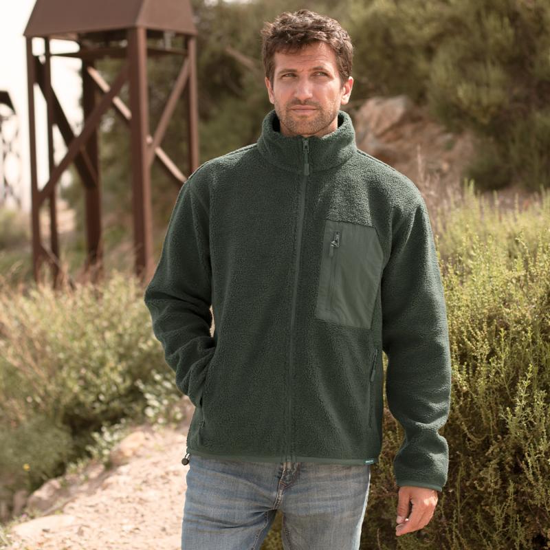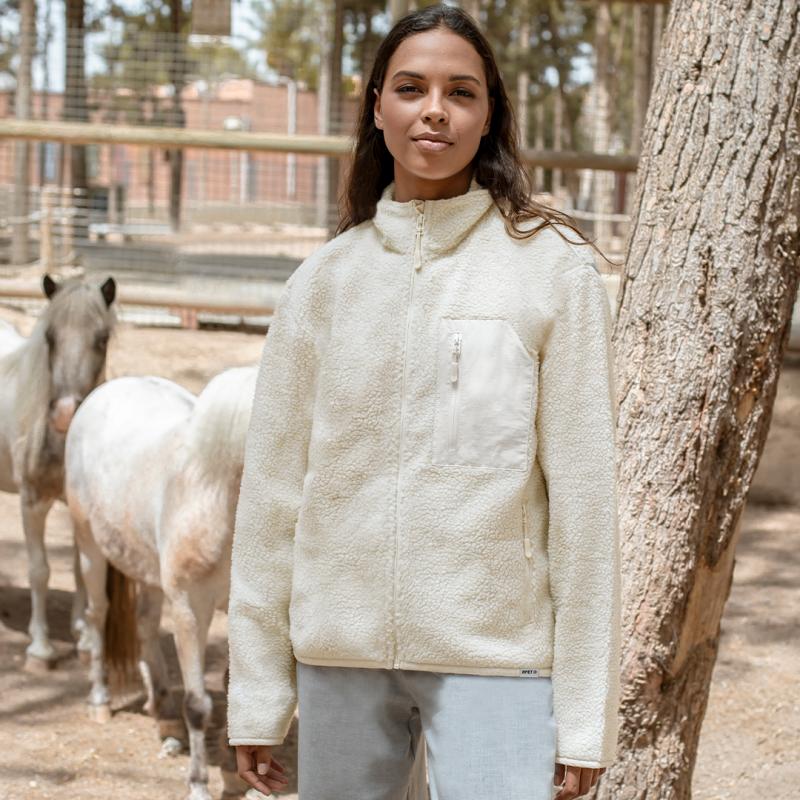 Chaqueta en cálido material sherpa RPET de 450g/m2, con interior de forro polar en color a juego. De suave tacto y estilo borrego. Bolsillo en pecho de poliéster RPET con cierre de cremallera y tirador a juego. Con cremallera central invertida en nailon y bolsillos laterales con tiradores de color a juego, que agregan un estilo único. Incluye distintivo eco en dobladillo inferior de la prenda.Disponible varios colores y en tallas XS, S, M, L, XL, XXL.