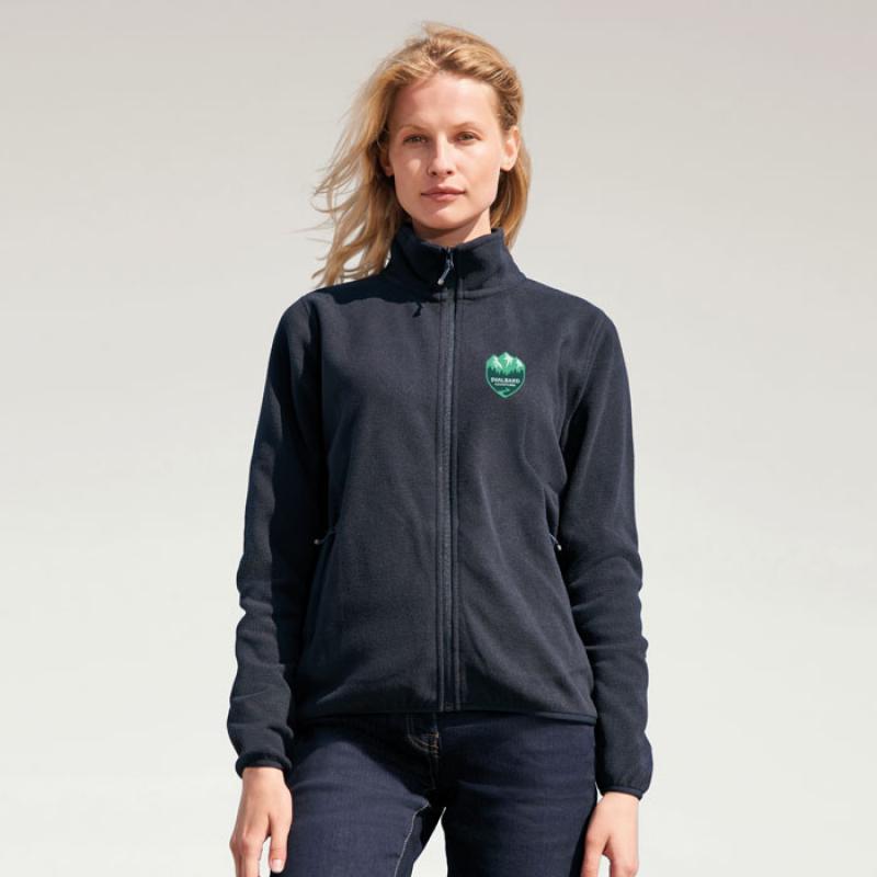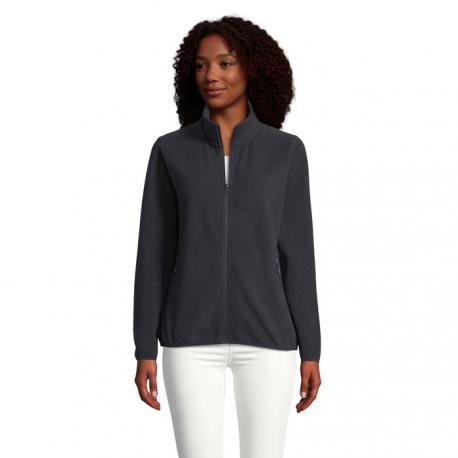 SOL'S FACTOR chaqueta mujer 280g. Bolsillos laterales con cremallera y apertura frontal con tiradores de cremallera en contraste. Cinta de refuerzo en el cuello. Cinta al bies elástica en los puños y en el bajo. Fabric details: 100% poliéster reciclado. OEKO-TEX® Only Sold with Print.