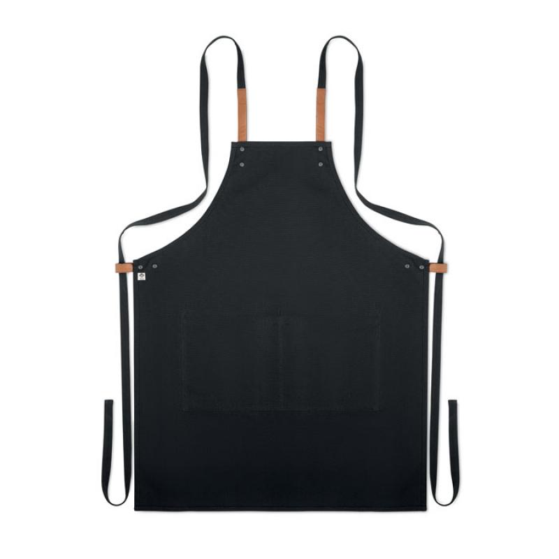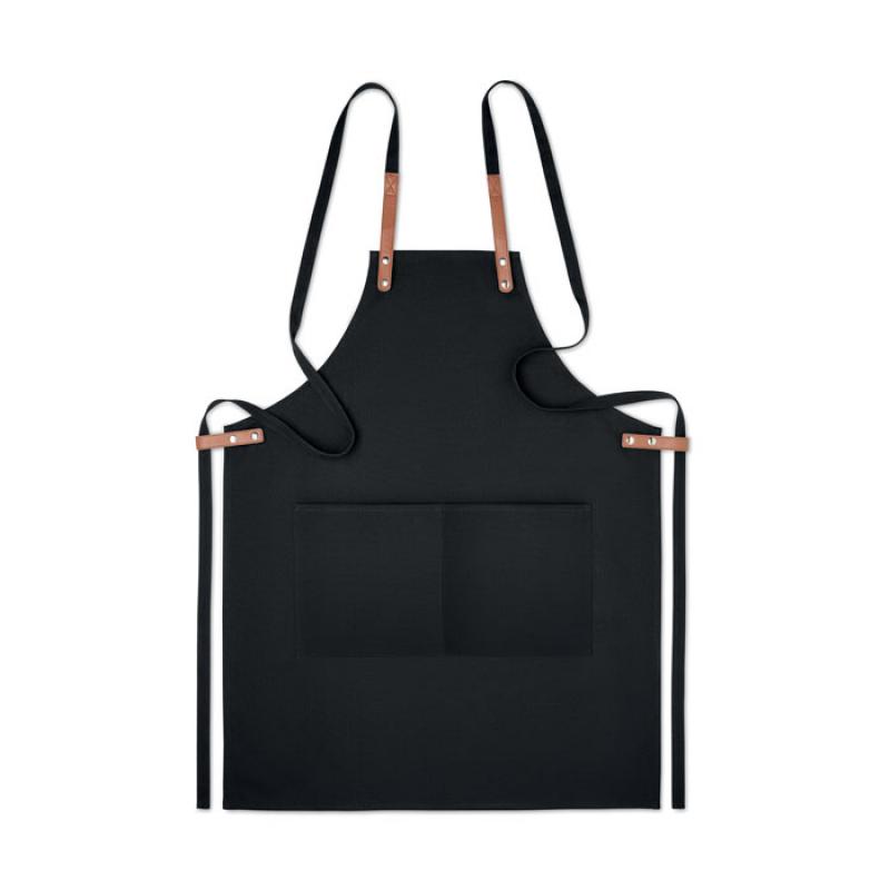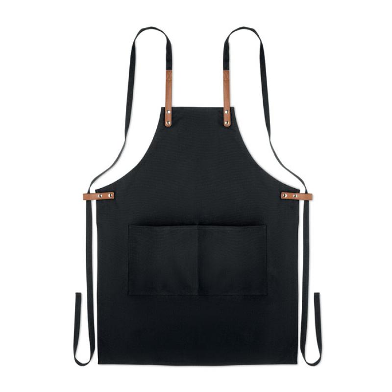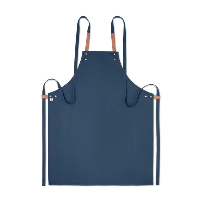 Delantal de cocina ajustable con 2 bolsillos delanteros en algodón/canvas orgánico de 340 gr/m².Hecho de algodón orgánico producido bajo etiqueta certificada. Presentado en caja individual.