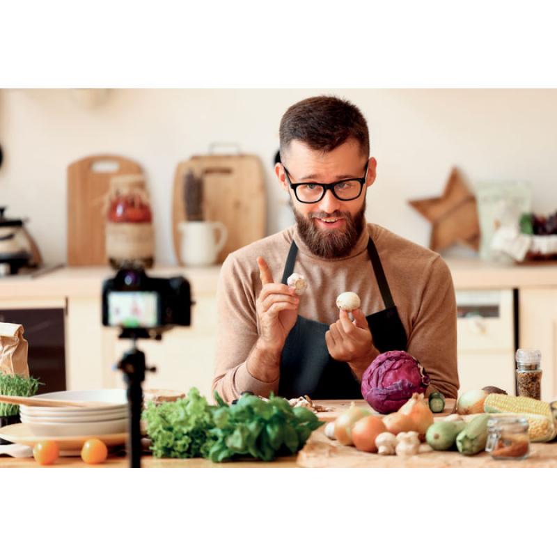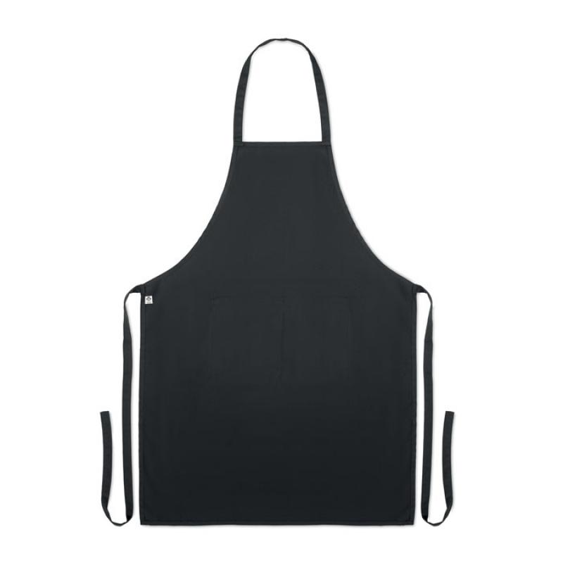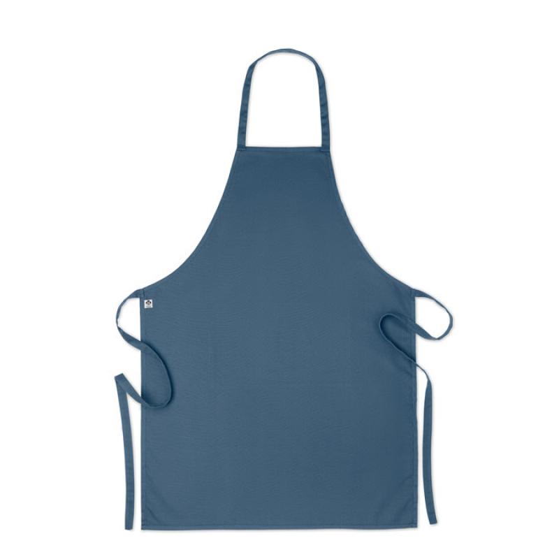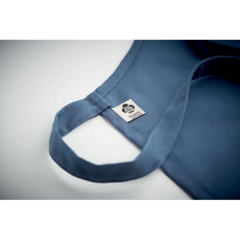 Delantal de cocina con 2 bolsillos delanteros en algodón orgánico de 200 gr/m². Producido bajo certificado estándar para controlar el uso de sustancias nocivas en textil.