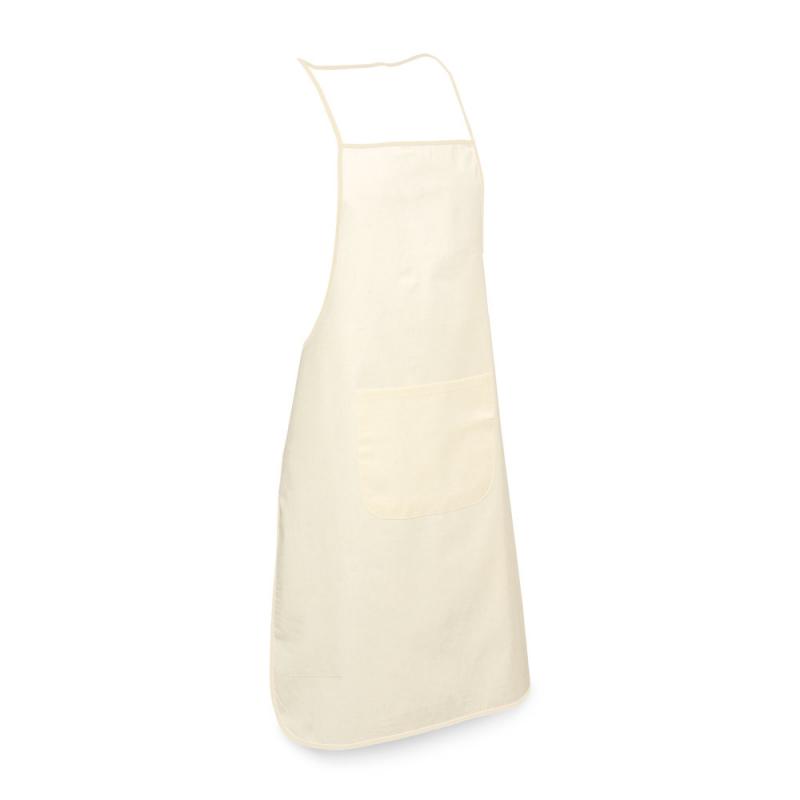 Delantal hecho en un suave algodón 100% de color crudo, con detalle de color. Contiene un bolsillo frontal y cordones para su ajuste.600 x 900 mm | Bolsillo: 250 x 200 mm