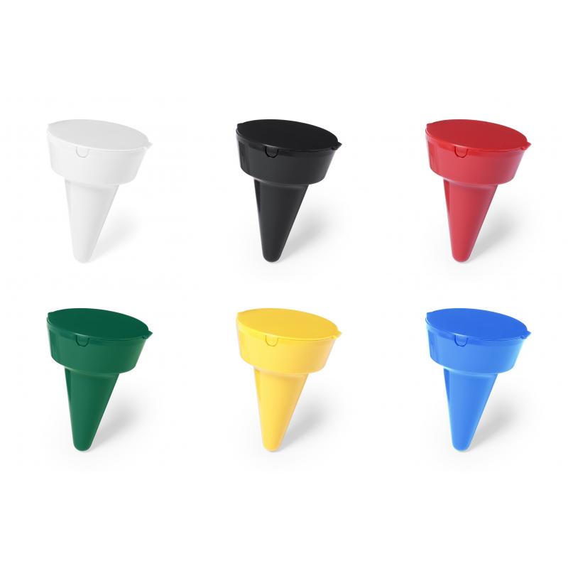 Resistente cenicero portátil con cuerpo acabado en vivos colores y pincho de anclaje.