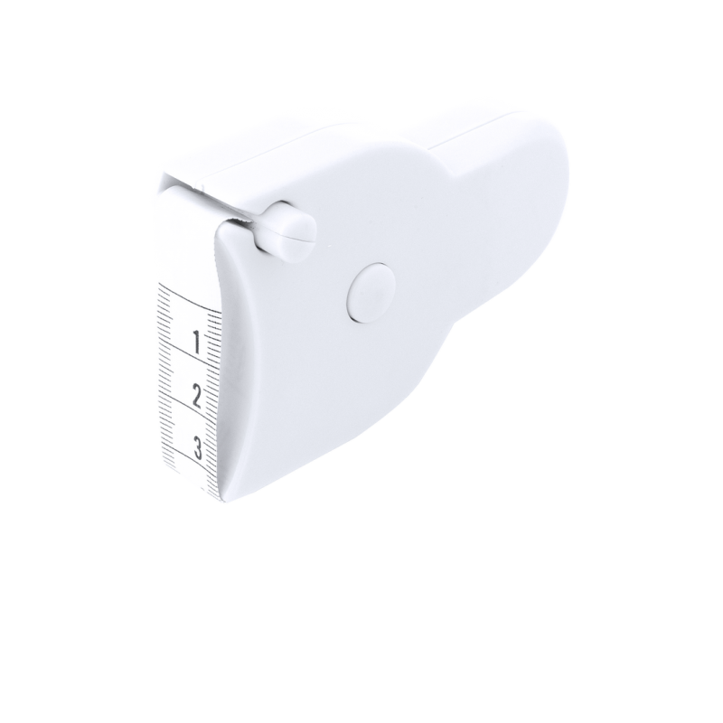 Cinta métrica de PVC de 157cm de largo y mecanismo retráctil con botón de parada.