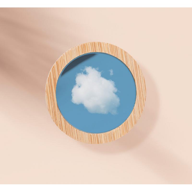 Espejo 1X de línea nature fabricado en bambú. Presentado en caja individual de diseño eco.