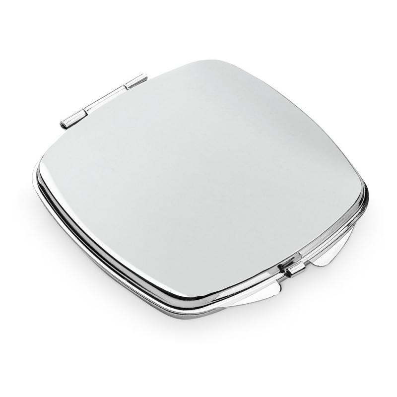 Mini espejo doble plegable, hecho en metal. Práctico y compacto para llevar en el boslo y usar siempre que sea necesario. Dispone de una ranura ideal para personalizar en doming. Suministrado en caja de regaloRecipiente :