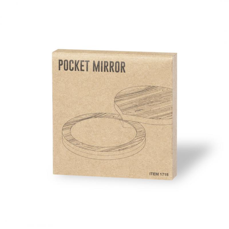 Espejo 1X de línea nature, con carcasa fabricada en bambú y cierre magnético. Presentado en caja individual de diseño kraft.