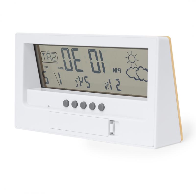 Estación meteorológica con frontal en bambú. Con sensor de temperatura y humedad. Función calendario y alarma. Alimentación a pila (1xAAA no incluida) y presentado en atractiva caja de diseño kraft. Disponible manual de instrucciones en español e inglés.Materiales como el bambú fomentan la utilización de materias primas naturales, reduciendo las emisiones contaminantes. Proviene de una planta de gran resistencia y versatilidad, con crecimiento y regeneración rápidos, siendo una excelente alternativa al uso de madera tradicional.