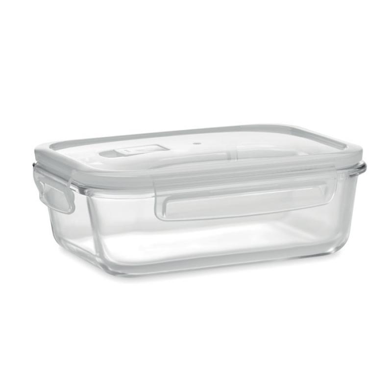 Fiambrera de vidrio borosilicato con tapa hermética en PP. Apto para microondas. Capacidad 900 ml.