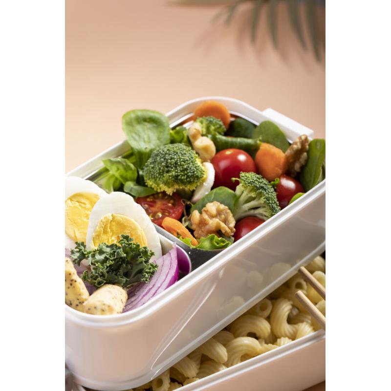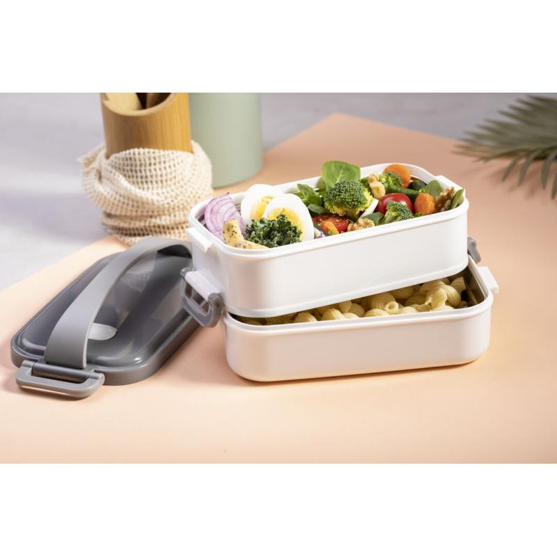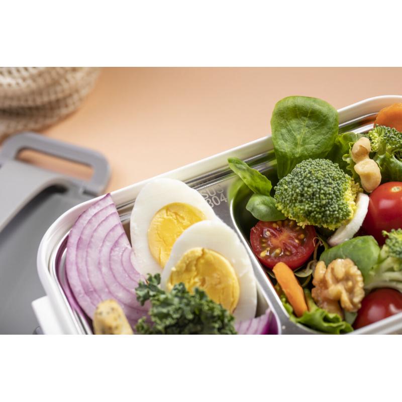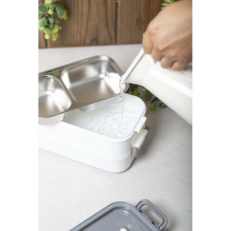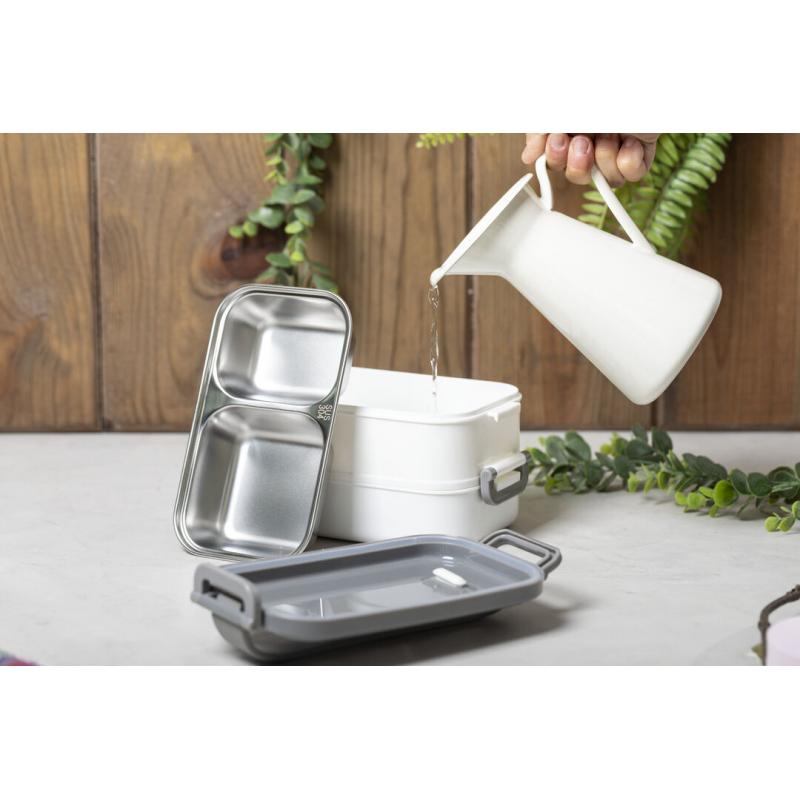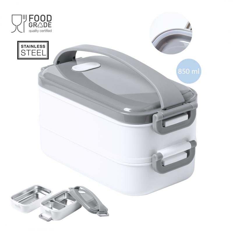 Fiambrera térmica de 850ml de capacidad. Fabricada en acero inox y PP, libre de BPA. Incluye 2 compartimentos independientes con bandejas en acero inox y cierre hermético, de 500ml y 350ml de capacidad respectivamente. Ideal para una correcta conservación del calor, con posibilidad de prolongación añadiendo agua caliente.