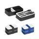 Fiambrera de PP y PS con 2 compartimentos (680 ml cada uno) y 1 separador extraíble. Incluye 3 cubiertos: tenedor, cuchillo y cuchara. Cierra con una banda elástica y es apto para microondas (quitar la tapaRecipiente :