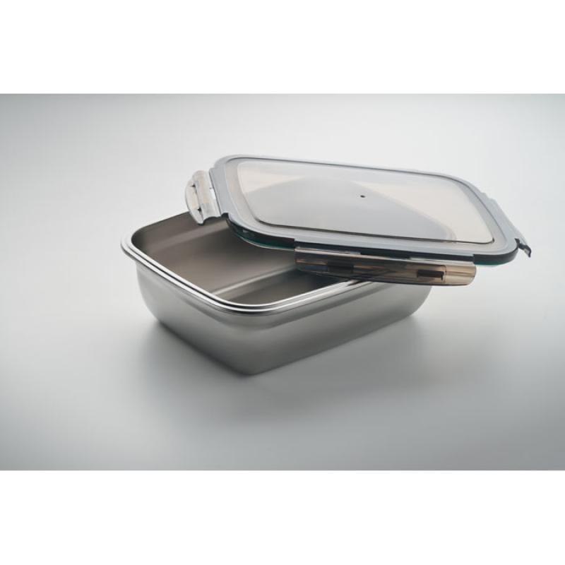Fiambrera de acero inoxidable reciclado con tapa de PP reciclado y 4 cierre laterales. Incluye separador. Capacidad: 1500 ml.Recipiente :