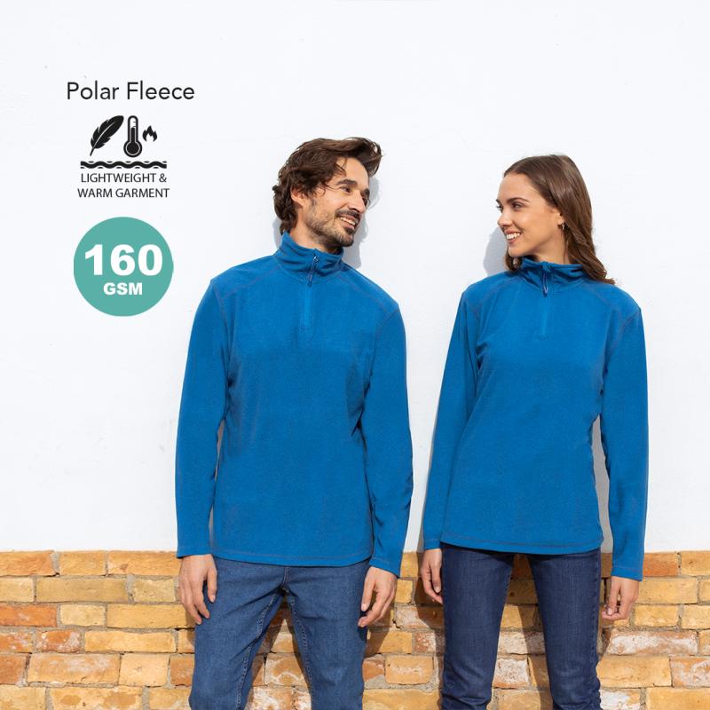 Forro polar unisex, fabricado en cálido y suave polar fleece peinado de 160g/m2, con efecto melange. Cierre de cremallera a juego en el cuello, con solapa para cubrir la cremallera. Disponible en varios colores y en tallas XS, S, M, L, XL, XXL.