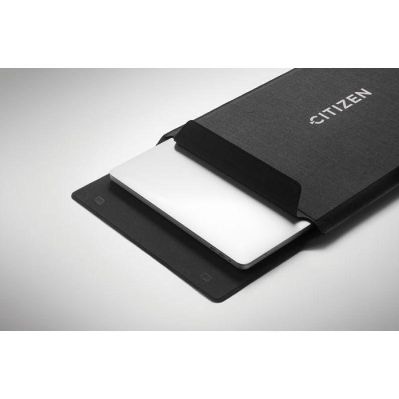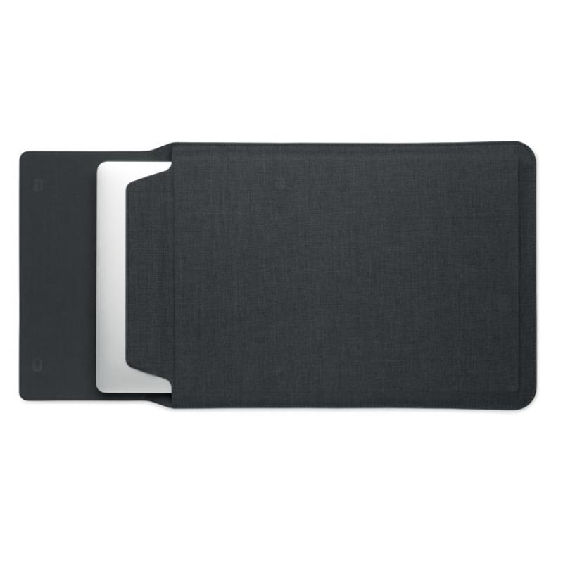 Funda para portátil 3 en 1 de RPET de 16'' con soporte para portátil y funcionalidad de alfombrilla de ratón cuando está desplegada.Recipiente :