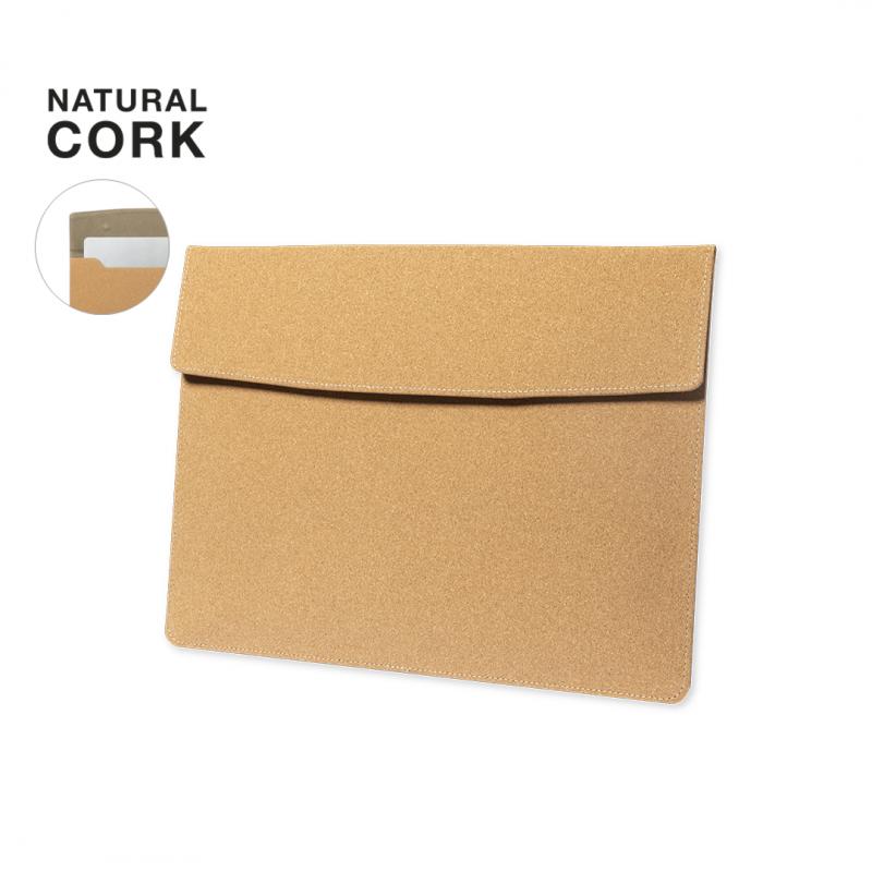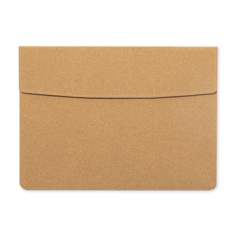 Resistente funda para ordenador portátil de calidad premium fabricada en corcho, favoreciendo el uso de materiales naturales. Compartimento principal con cierre magnético de solapa e interior acolchado. Para ordenador portátil o tablet de hasta 14 pulgadas.