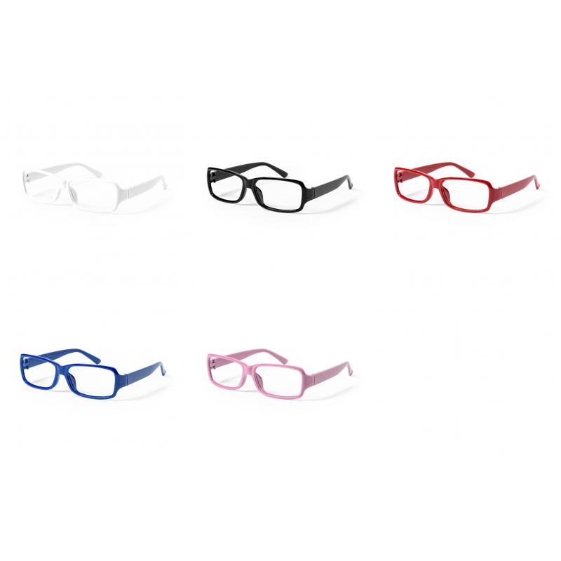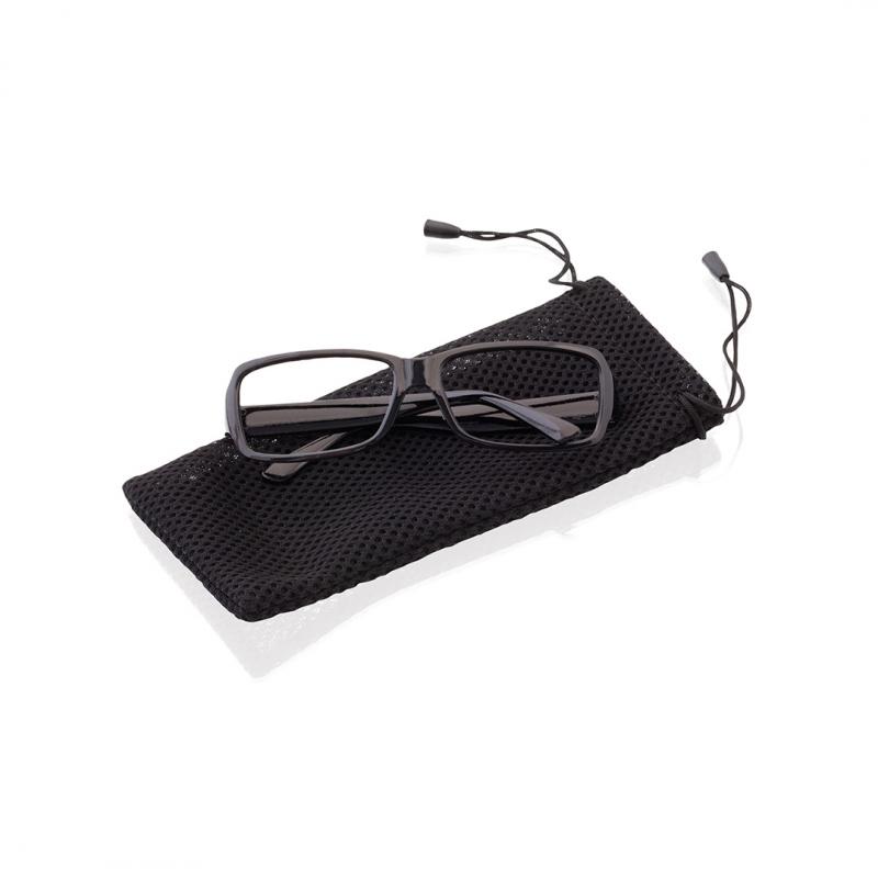 Originales gafas sin cristales con montura en variada gama de vivos colores. Presentadas en funda acolchada de poliéster con cordones autocierre.