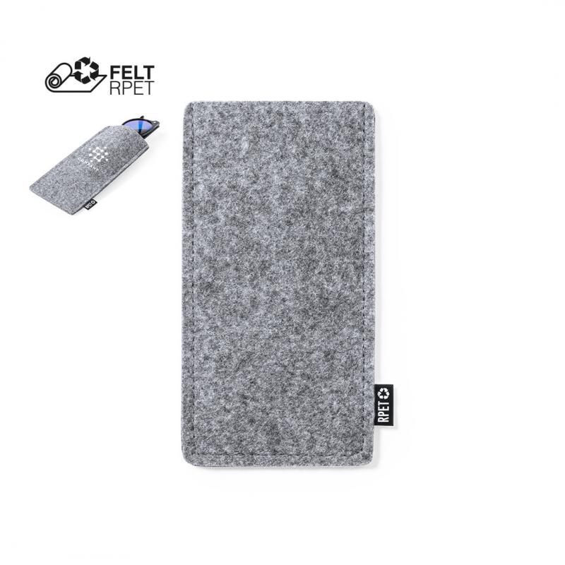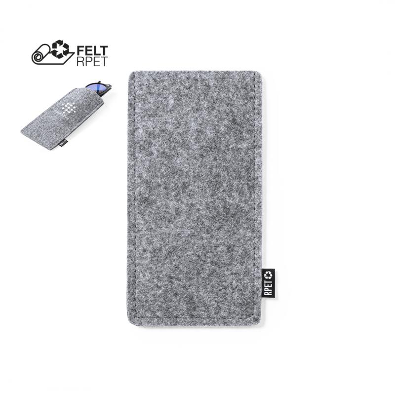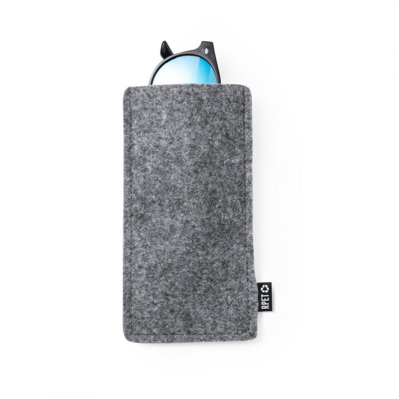 Funda para gafas de sol fabricada en resistente y suave fieltro RPET. Acabado cosido y con distintivo RPET en etiqueta exterior. El fieltro RPET es fruto de la combinación del proceso de reciclaje de materiales plásticos junto con la técnica milenaria de fabricación del fieltro, dando como resultado un material de eco-tendencia que, además de ser de origen reciclado, también se convierte en reciclable.
