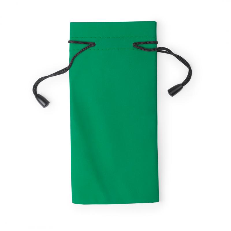 Funda paño limpiador para gafas en suave poliéster y amplia gama de divertidos colores. Con cordones autocierre.