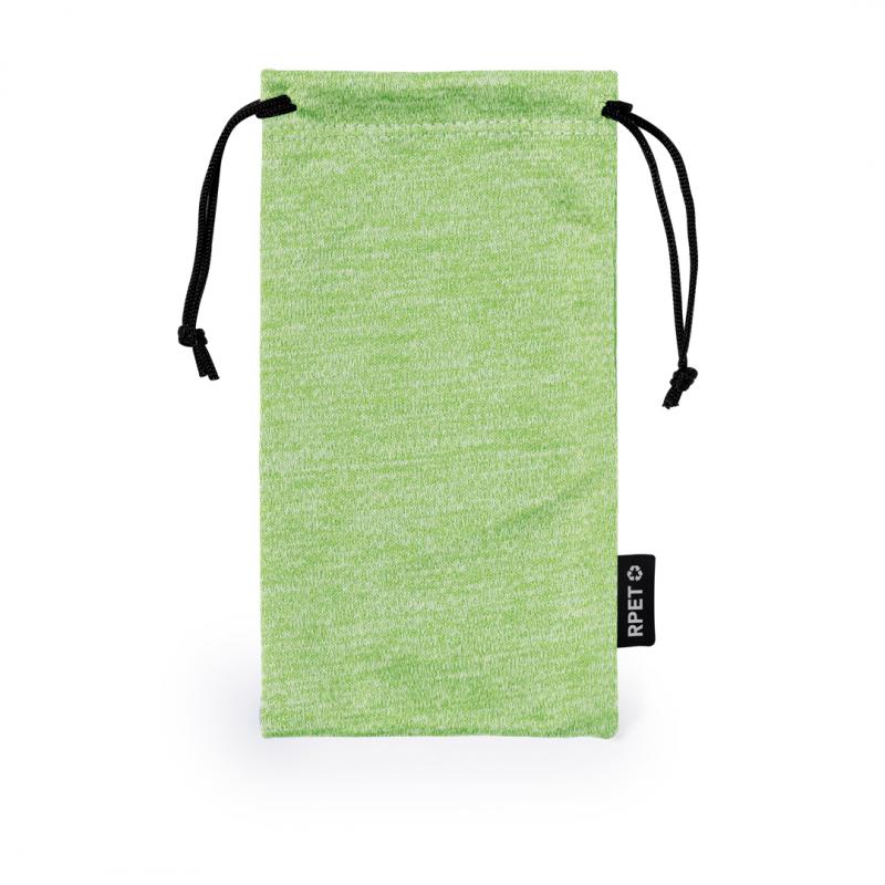 Funda para gafas en suave microfibra RPET y amplia gama de divertidos colores, con cordones autocierre. Con logotipo en etiqueta. El material RPET se elabora a partir de plástico reciclado, para así fomentar la reutilización de residuos plásticos y ayudar a la sostenibilidad del planeta.